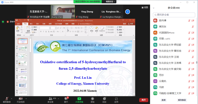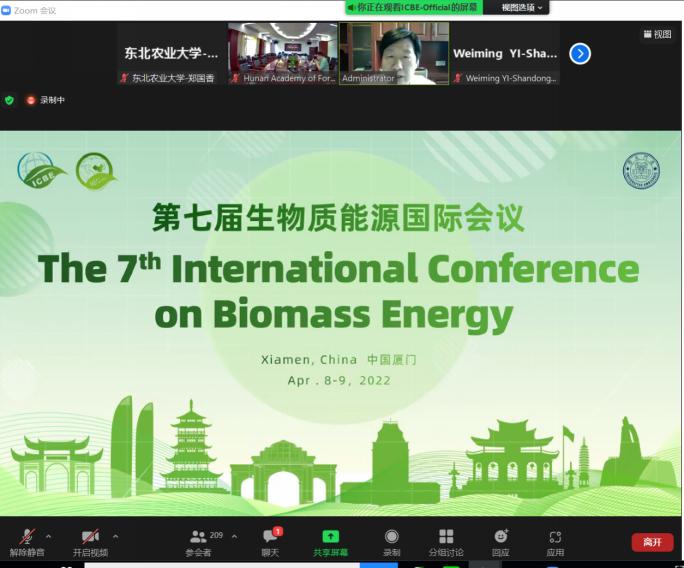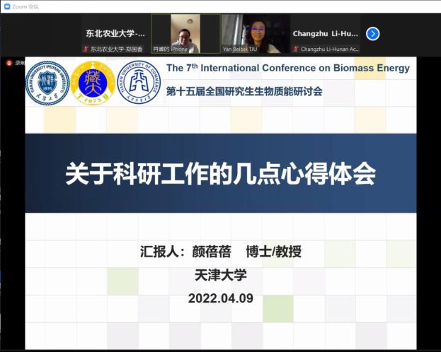为促进生物质能源领域人才学术交流,培养专业兴趣,激发创新热情,推动生物质能源产业健康发展,4月8-9日,澳门十大信誉好的网站农业废弃物高值化利用学科团队教师和同学们线上参加了由中国可再生能源学会生物质能专业委员会、生物质能源产业技术创新战略联盟和厦门大学共同主办的第七届生物质能源国际会议暨第十五届全国研究生生物质能研讨会。会上听取了国内外领域权威专家谭天伟(院士)、陈勇(院士)、Zhu Junyong(USA)、Zheng Ying(Canada)、Zhen Fang(Canada)、Rafael Luque(Spain)、廖强、李昌珠的主旨报告以及青年科学家颜蓓蓓、曾宪海的精彩报告分享。