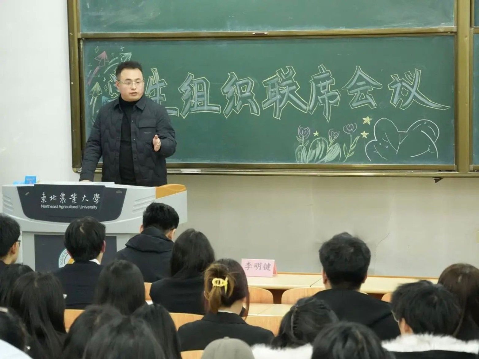 李明键老师则重点围绕"一心双环"育人机制进行深入解读与工作部署。他强调,要以团委为核心,牢牢把握团学组织的政治方向与育人核心;同时,充分发挥学生会(内环)作为联系广大同学的主渠道,以及学院其他学生组织(外环)作为校园文化活跃载体的补充。通过强化核心引领、联动内外环力,推动各学生组织从"单兵作战"向"协同共进"转变,着力构建资源共享、优势互补、风险共防的工作新格局。