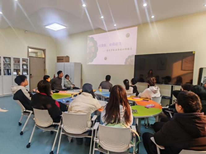 在理论讲授环节,姚雪老师结合心理学知识,系统介绍了曼陀罗绘画的心理学渊源及其在心理辅导中的积极作用。她指出,瑞士心理学家荣格曾通过绘制曼陀罗进行自我梳理和心理调适,此后曼陀罗绘画逐渐发展成为表达性艺术治疗的重要方式之一。围绕曼陀罗绘画在缓解焦虑情绪、促进自我整合、激发创造潜能等方面的作用,姚老师进行了深入浅出的讲解,帮助同学们加深了对曼陀罗绘画及其心理意义的理解。