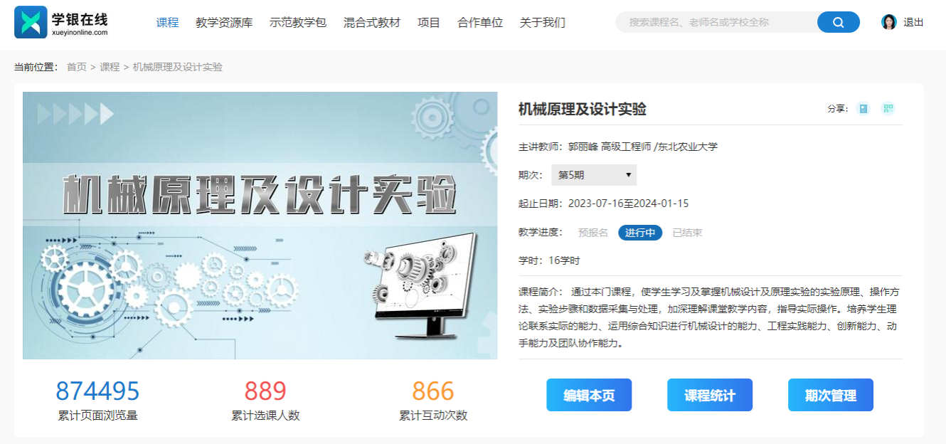《机械设计基础实验》是一门技术基础实验课程,通过课程学习,使学生学习及掌握机械设计基础实验的操作方法、实验步骤和数据采集与处理,加深理解课堂教学内容,指导实际操作。课程兼具基本型、综合型和创新型实验,培养学生综合设计能力、工程实践能力、科学实验能力、创新能力、动手能力和团队合作能力,提高学生利用所学知识解决工程实际问题的能力。课程于2019年创建了在线课程,2021年在学银在线平台开放,并完整运行4个期次,课程结合在线资源,形成了线上线下混合式教学模式,是实验课混合式教学的示范。教学团队成员荣获第三届全国高校教师创新大赛国赛三等奖1项,省教师教学创新大赛特等奖1项、一等奖1项,在与本课程直接相关的大学生科技竞赛中,指导学生获省级以上奖励14项,其中国家级奖励9项。