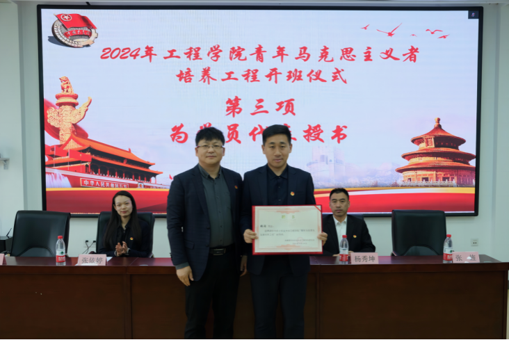 随后,学院党委副书记孙涛为班导师代表颁发聘书,副处级辅导员杨秀坤为学员代表授书——蒋亦元院士传记《颗粒归仓的梦想》。鼓励学员通过蒋亦元院士的科研事迹与人生经历深刻领悟他追求真理的科学家精神和勇往直前的奋斗精神,并将其转化为自身成长的动力。