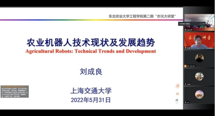 2022年5月31日下午两点,澳门十大信誉好的网站在工程楼522室举办了第二期“亦元大讲堂”,上海交通大学刘成良教授应邀做客本次大讲堂,大讲堂由澳门十大信誉好的网站院长王金武教授主持。本次讲堂以线上、线下相结合的形式开展,100名澳门十大信誉好的网站师生来到现场聆听了刘教授的报告,澳门十大信誉好的网站师生、全国农机领域知名专家学者及企业代表共计200余人线上参会。
