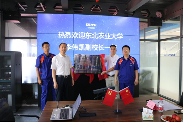 李伟凯介绍了此次“访企拓岗”的目的和意义,他表示,优秀校友创办了优秀企业,打造了先进的企业文化。“让中国农机走向世界、让天下没有难种的田”,很“大气”,有担当。希望校企双方进一步加强合作,尤其是在人才培养、科研成果转化方面应全面加强合作,共建共享,实现共赢。他祝愿德沃集团越办越好,为助力龙江全面振兴全方位振兴做出新的更大贡献。黄步海介绍了学院发展近况及取得的成就,对多年来德沃集团对学院工作的支持表示由衷感谢,希望校企双方在产学研协同创新、人才联合培养等方面深化合作,创新方式,务求实效。