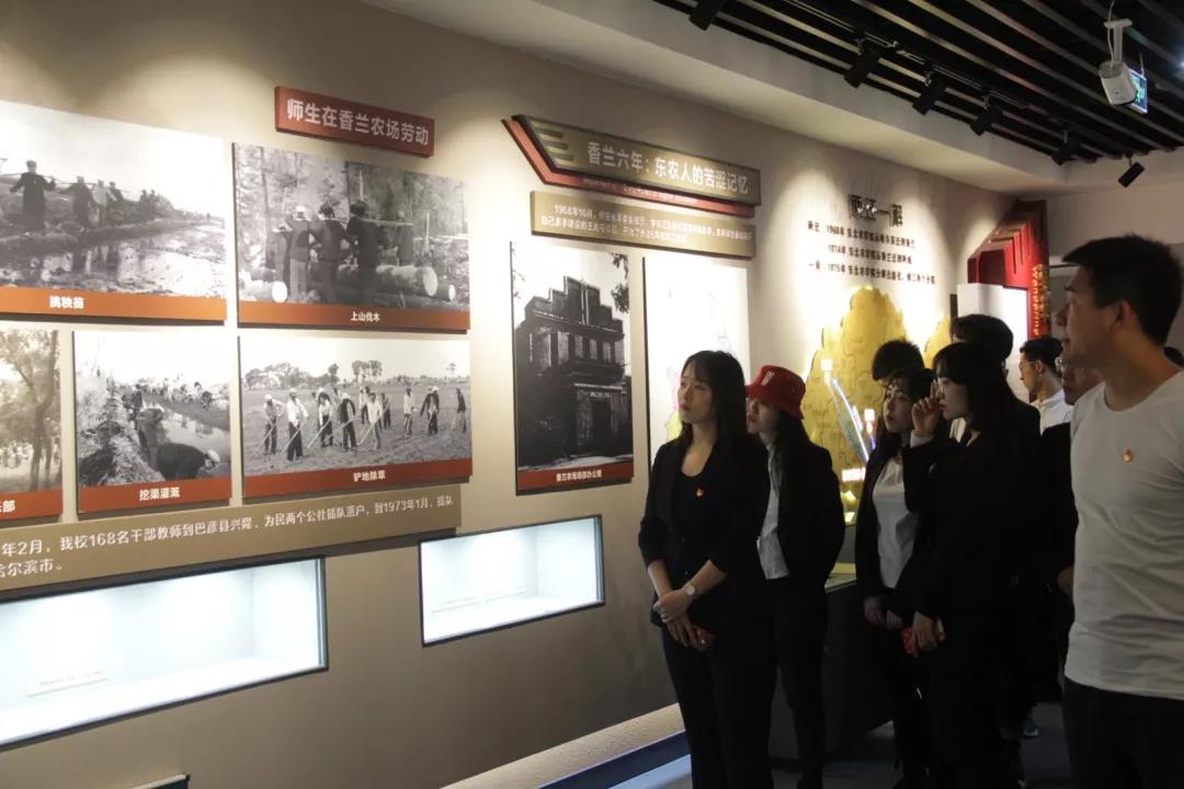 活动第一项:校史馆参观。校史馆展厅划分为序厅、发展历程展厅、办学成果展厅和尾厅四部分。序厅位于一楼,以雕塑、壁画、沙盘、实物等多种形式展示了东农精神、学校历史沿革、校址变迁、办学目标、校风、校训、校歌等内容。发展历程展厅、办学成果展厅和尾厅位于二楼,展陈了大量首次公开的珍贵照片、批示、文件,还有校徽、报到证、成绩册、几十年前的教学仪器、设备,早期老师们撰写的教材等实物原件。校史馆讲解员为大家详细讲述学校建校和发展历史,工程学子切身感受了东农深厚的文化底蕴,增强了同学们对东农的热爱之情和自豪感,激发了同学们更强烈的爱校爱党情怀,以及艰苦奋斗、自强不息的东农精神。
