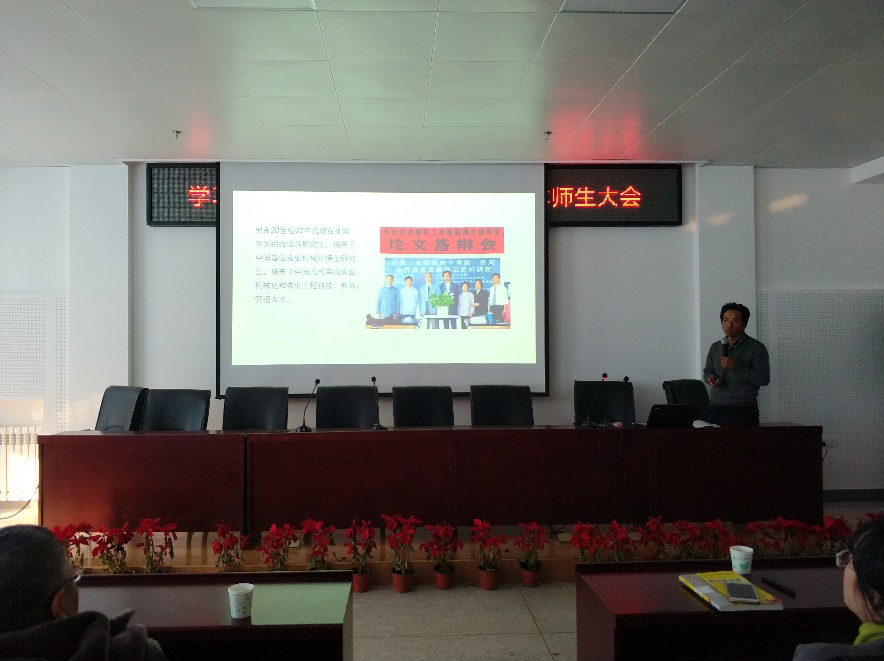 为使学科师生更清晰了解余友泰先生事迹,会议邀请余友泰先生弟子、管理科学与工程学科带头人王福林教授辅导学习余友泰老先生的生平事迹。王福林老师从科学研究、人才培养、学科建设、领导学校建设等几个方面讲述了余友泰先生的业绩及成果,讲述了余友泰先生在中国农业工程、农业机械化及农业系统工程学科建立和发展过程中做出的卓越贡献,解读了余友泰先生的经典文献成果,使广大师生更加明确余友泰先生的学术成就。余友泰先生学风严谨、学术超群、师德高尚、大家风范;余友泰先生是我国农业机械化和农业工程领域的一代宗师,是农业机械化学界的泰斗。