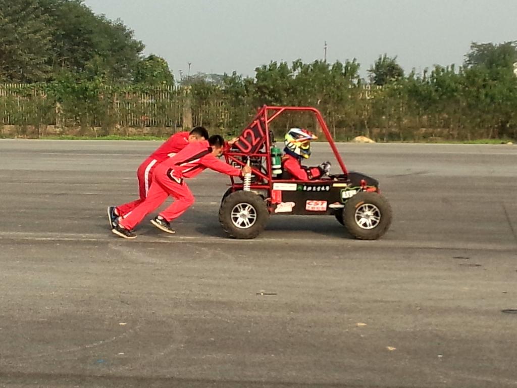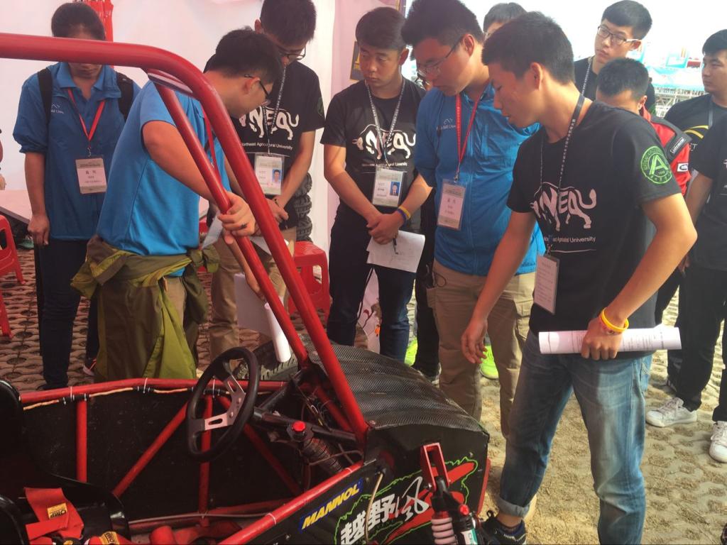 本次大赛共吸引了61支车队参加,十大信誉官网派出了15名队员、3位指导教师和由学生们亲自设计制造的最新款Baja赛车参加了比赛。今年巴哈赛事赛道的难度较往年加大,除炮弹坑加深、驼峰高度增高外,还新增了轮胎阵,在比赛期间还下起了大雨,赛道非常泥泞,给队员和赛车都带来了前所未有的挑战。在历时三天的比赛中,十大信誉官网车队队员不怕吃苦、敢打敢拼,出色地完成了设计答辩、车检、直线加速、牵引、操控和耐久等比赛项目,最终以总分497.86分的成绩获得大赛三等奖。