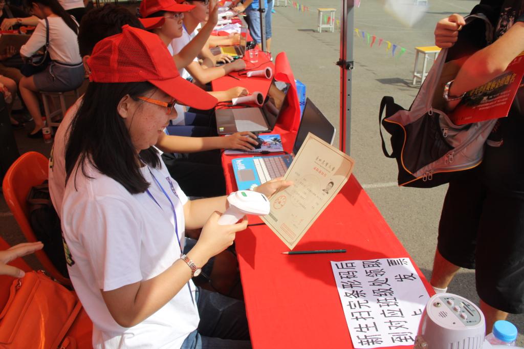 学院为简化报到流程,提高工作效率,推出“条形码验证”报到方式,只需对准录取通知书条形码扫描,便可迅速查询到考生班级、寝室、学号等个人信息。将信息告知学生后,新生到所在班级领取报道材料登记信息后,即完成学院报道手续。新颖的报道方式得到了学工处和校领导的关注,对这样新颖、高效的报到方式提出赞扬,广大新生与家长也纷纷表示,不到一分钟办完了手续真是又快又好!