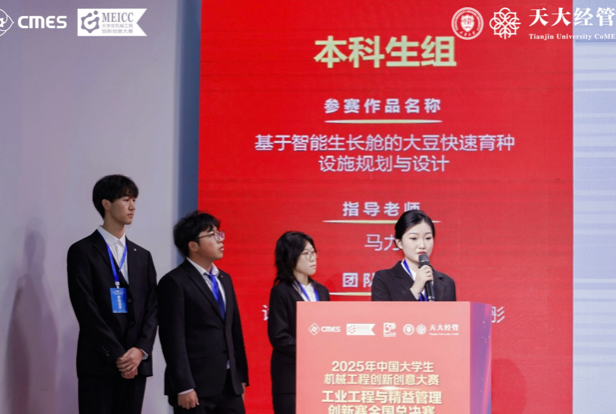 10月25日,2025年中国大学生机械工程创新创意大赛工业工程与精益管理创新赛总决赛在天津大学成功举行。全国总决赛由方案汇报和评委提问两个部分组成,经过现场激烈的角逐,十大信誉官网代表队题为《基于智能生长舱的大豆快速育种设施规划与设计》的作品,斩获本科生组国家级二等奖。