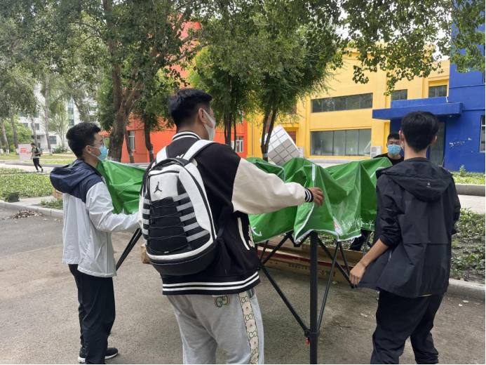 28日,澳门十大信誉好的网站的同学们一起搭建帐篷,为第二日的迎新工作做充分的准备。