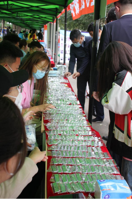 志愿者们将新生引领至新生报到处领取名牌和文件袋。