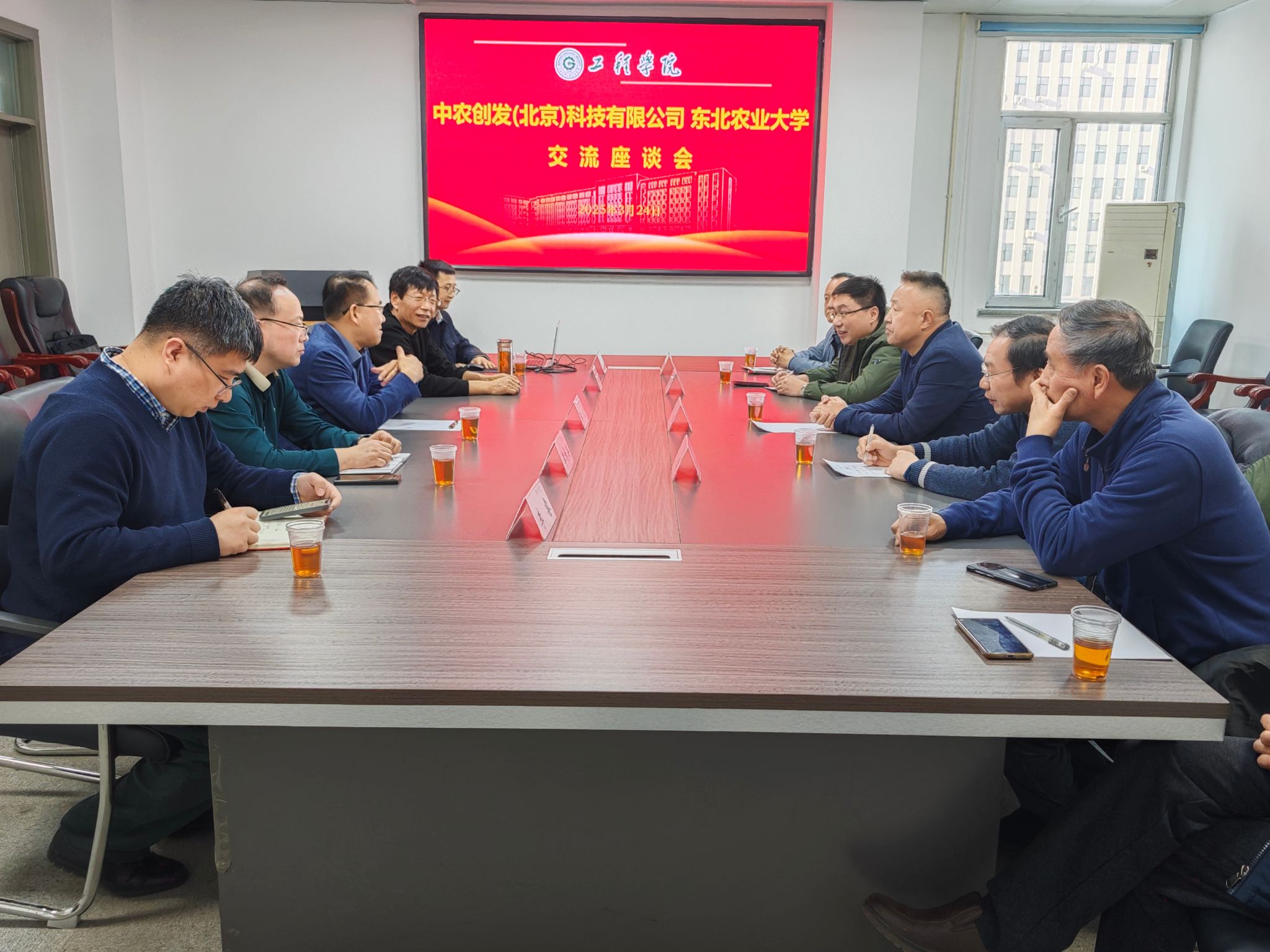 3月24日,中农创发(北京)科技有限公司董事长王双以及相关部门负责人一行5人来校开展调研交流,香港盘实资本中国区合伙人崔宇、余庚星陪同调研。澳门十大信誉好的网站院长李岩、副院长李龙海、旱作主要作物机械化及其材料化技术与装备团队带头人陈海涛教授及团队师生代表参加座谈。会议由崔宇主持。