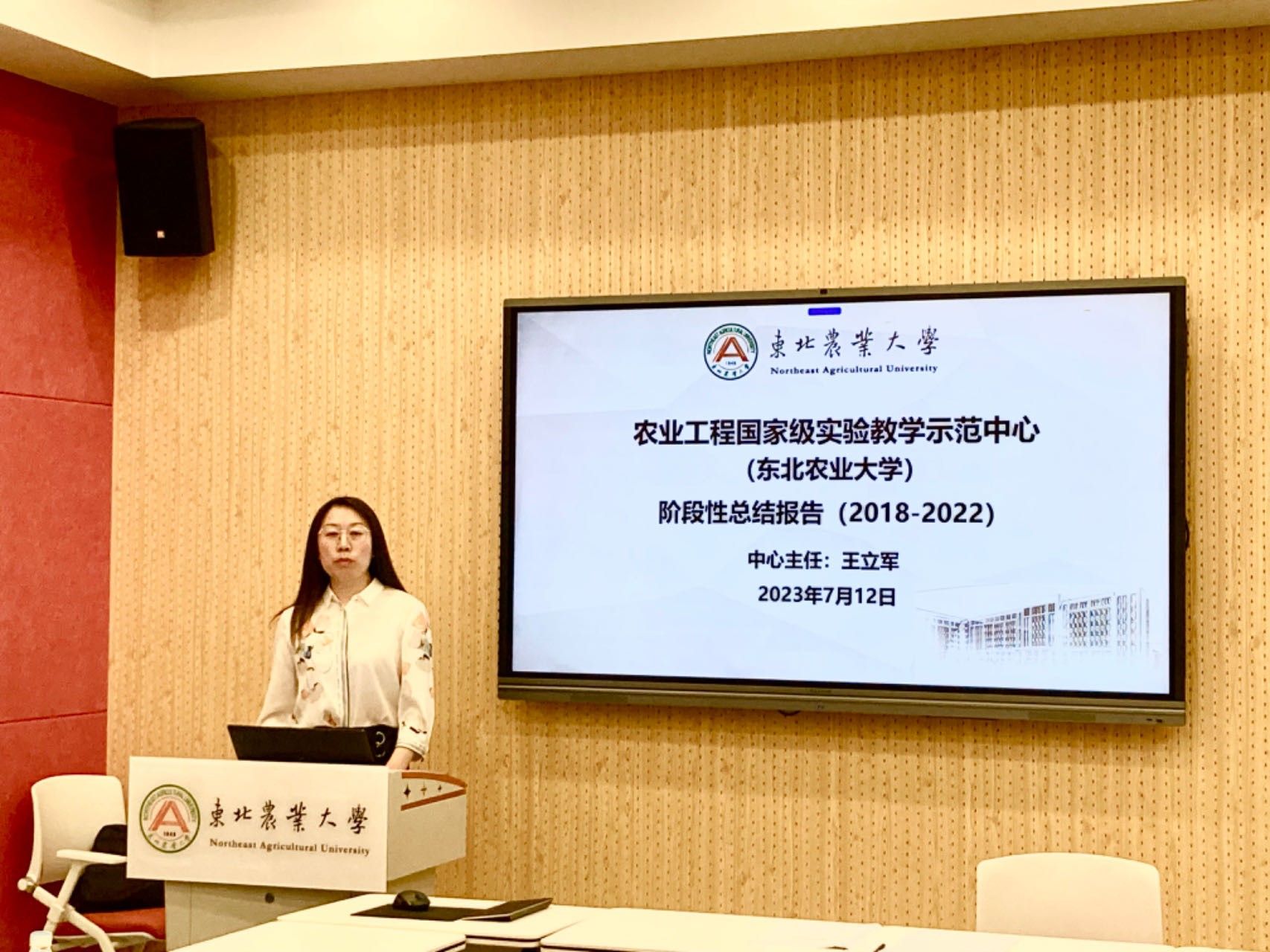 集中汇报会上,农业工程国家级实验教学示范中心负责人王立军对照《国家级实验教学示范中心阶段性总结项目观测表》,从管理与运行机制、教学与人才培养、教学改革与研究、教学条件保障、教学团队建设、示范引领成效、特色亮点与创新7个方面对农业工程国家级实验教学示范中心2018-2022年的建设情况进行总结汇报并接受现场专家提问。