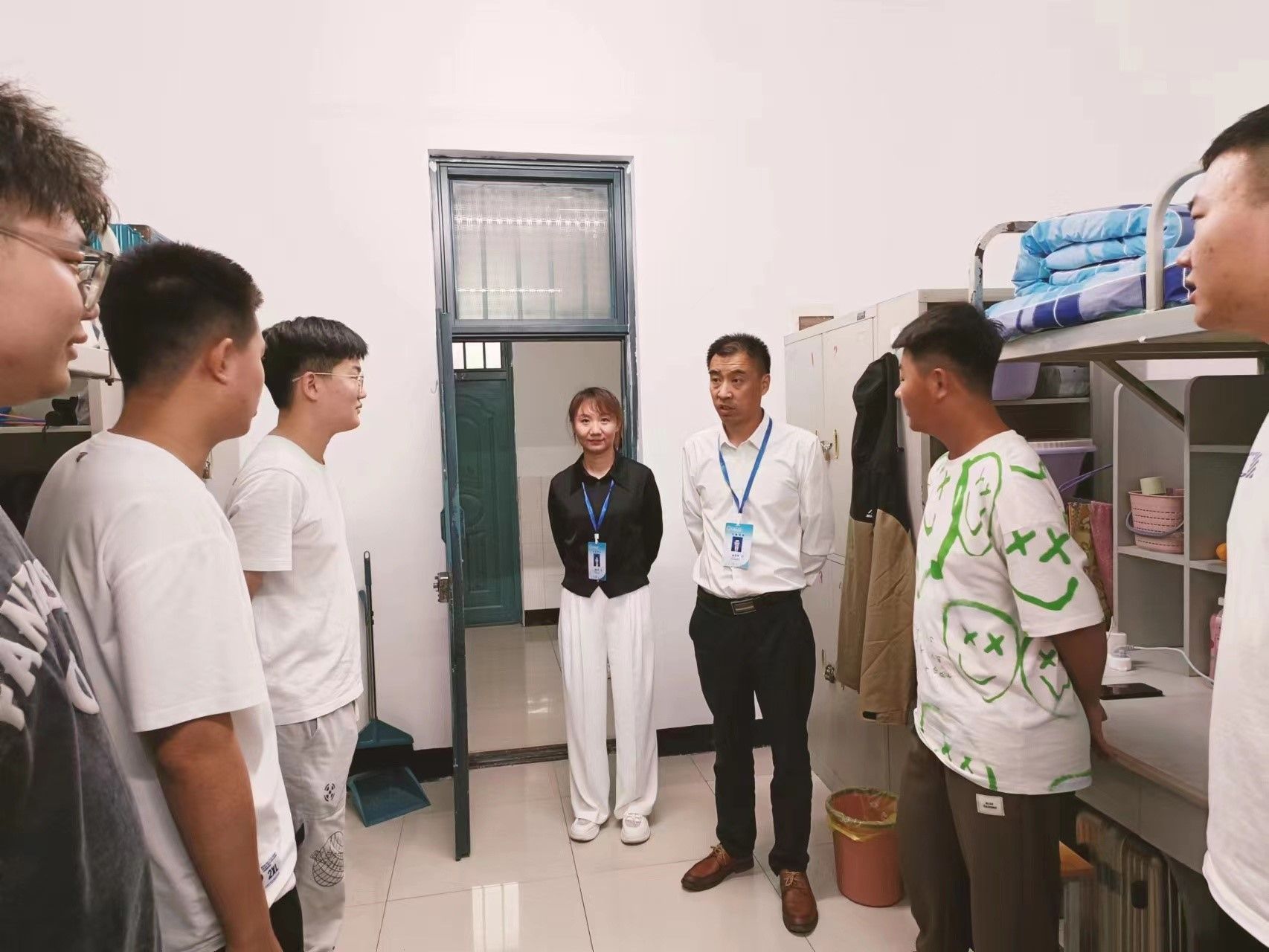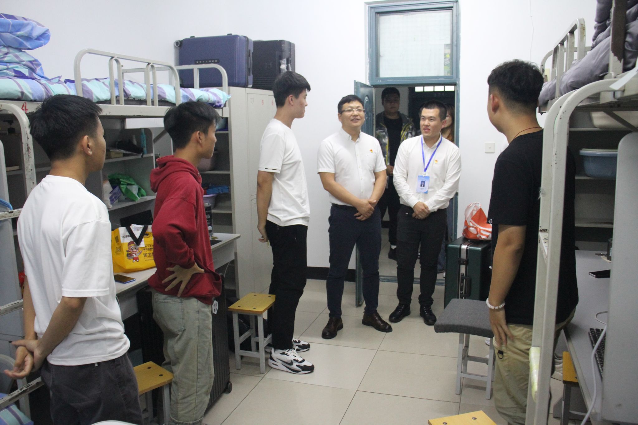 9月1日晚,孙涛书记、杨秀坤老师、陈玉成老师及张美玲老师还进行了走寝调查,耐心询问了同学们家中是否有困难,对东农食堂味道和住宿条件的评价等问题,就此与同学们进行了亲切的交谈。老师们耐心倾听学生们的困惑和烦恼,给予他们合适的建议和鼓励。通过这种面对面的交流,学生们感受到了教师们的关心与支持,激发了他们的积极性和学习动力,使他们更加有信心和动力面对学习和生活的挑战。