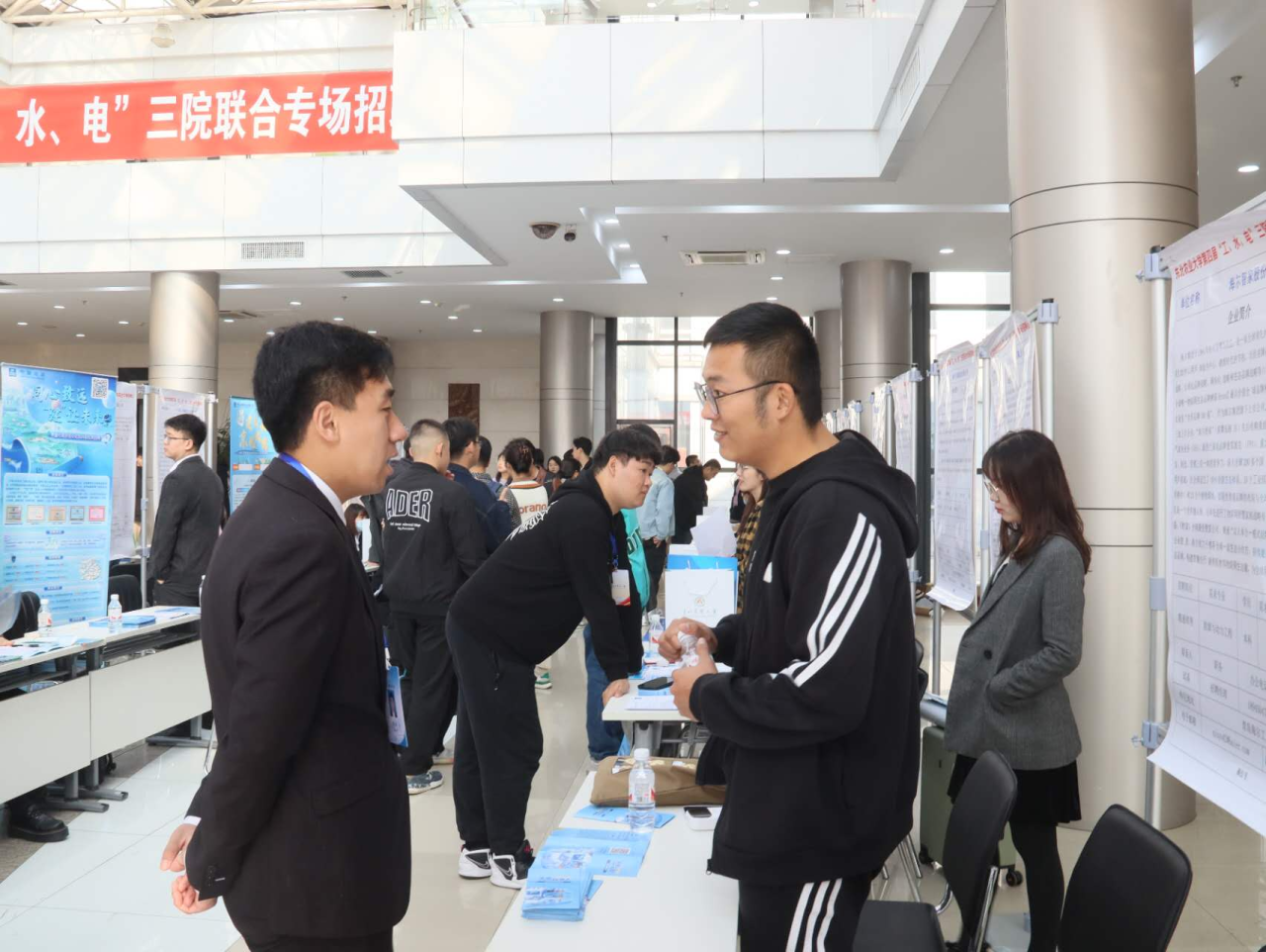 为积极响应习总书记人才强国的号召,切实推进人才兴国战略的实施,给广大毕业生与优质用人单位提供更好交流平台,鼓励毕业生积极投身于国家战略主战场,10月14日,由澳门十大信誉好的网站招生就业处主办,澳门十大信誉好的网站、水利与土木澳门十大信誉好的网站、电气与信息学院三院联合承办的第四届“工、水、电”专场招聘会在音乐厅顺利举行。招生就业处处长宋跃芬、副处长吴立龙,澳门十大信誉好的网站、水利与土木澳门十大信誉好的网站、电气与信息学院领导班子成员、招生就业处工作人员和三院全体辅导员参加招聘会。