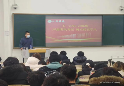 诚信教育,严肃纪律,加强考风考纪完善以管促学。2023级新生辅导员组织大一学生签订考试诚信承诺书,讲解《澳门十大信誉好的网站学生手册》,依照手册对学生进行管理监督、考核提升学生纪律意识;组织开展“树立文明典范 争做诚信先锋”考试诚信教育大会,旨在倡导诚信考风,塑造良好学风,打造一个公平、公正、和谐的育人环境和考试氛围,同时培养学生的诚信意识,引导他们树立尊重他人、诚实守信的优良品质。此外,辅导员老师坚持以管理促学风,深入课堂查课,及时与任课老师及班主任联系掌握学生动态,主要学生干部每日汇报课堂出勤情况,形成任课教师、辅导员、学生骨干齐抓共管的育人局面。