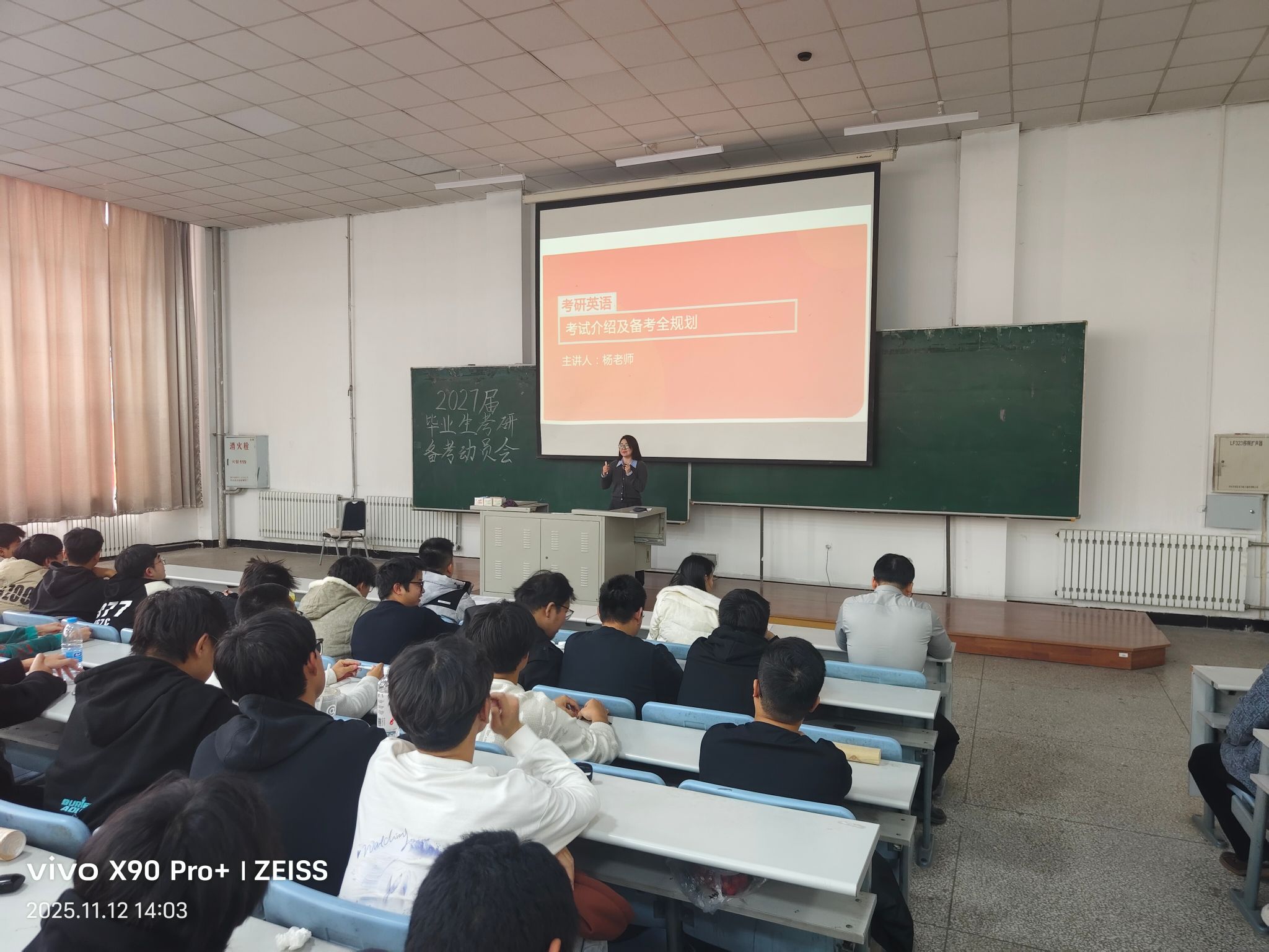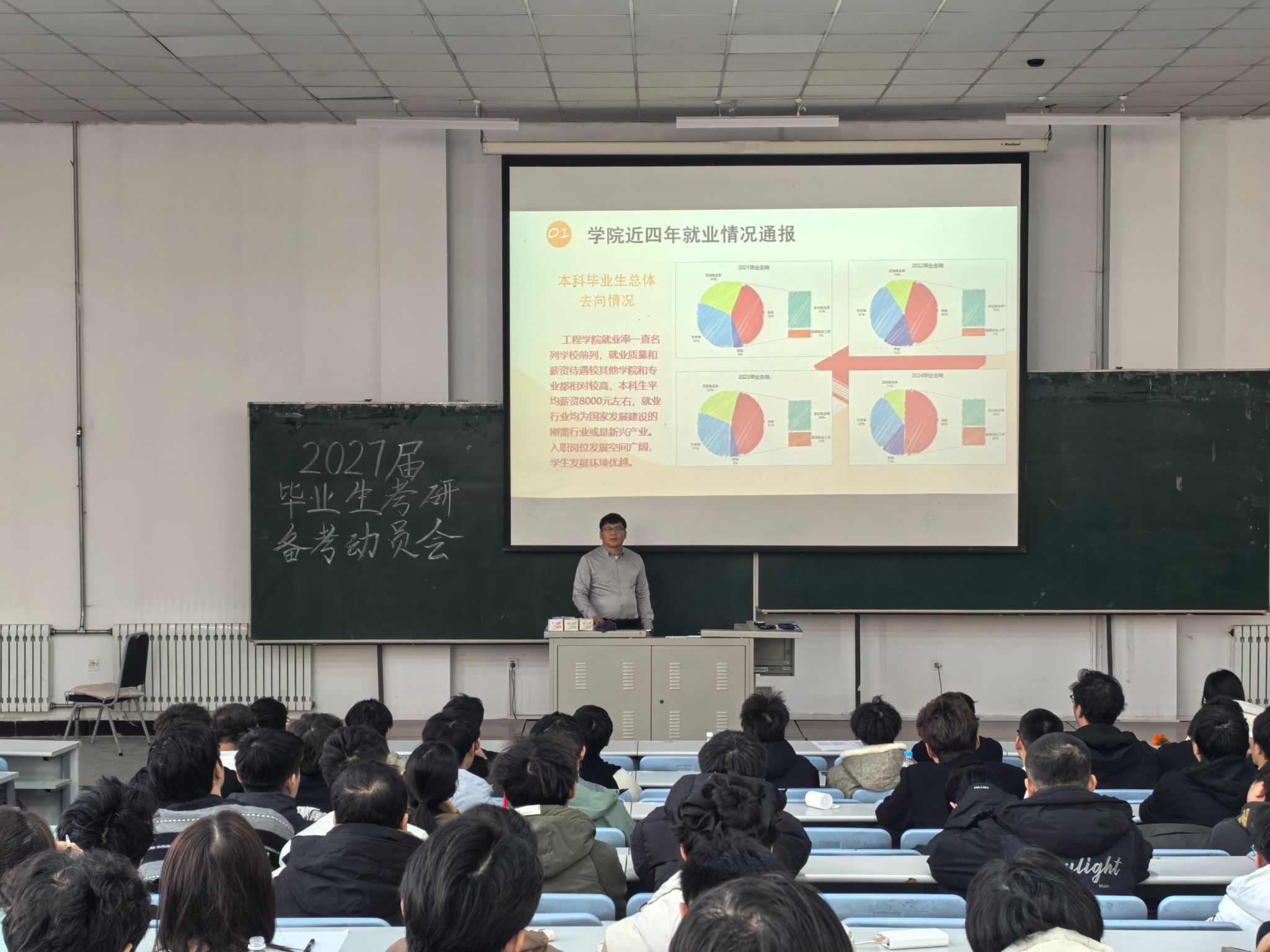 为积极响应国家促进高校毕业生高质量充分就业的号召,深入贯彻落实学校关于就业工作的部署要求,澳门十大信誉好的网站秉持早谋划、早部署、早行动的工作理念,于1112日与1119分别在研究生楼367教室及学院522会议室,面向2027届本科生组织召开了考研、考公动员启动会。会议由澳门十大信誉好的网站党委副书记孙涛主持,2027届毕业班辅导员张美玲、陈玉成参加,学院2027计划考研考公的300余名毕业生到场聆听。会议围绕当前考研、考公形势展开系统分析与备考辅导,助力学生科学备考,切实提高学生备考效率、提升学生考研考公的成功率